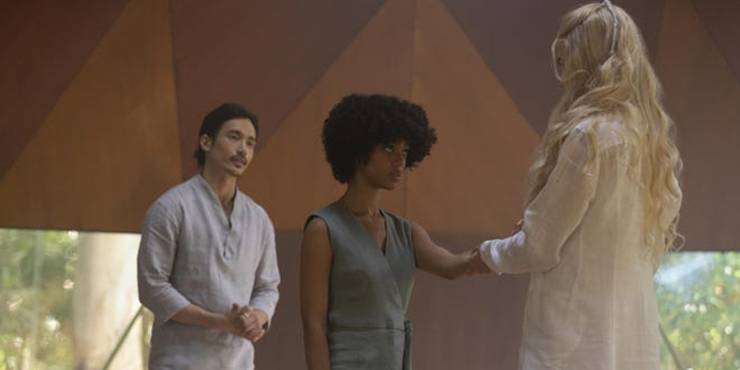Carmel Regina Hall Ben Melvin Gregg and Jessica Samara Weaving in Nine Perfect Strangers. And thank God because that tangential storyline seemed to come. Masha is drugging the spas guests as a way to get them to open up.